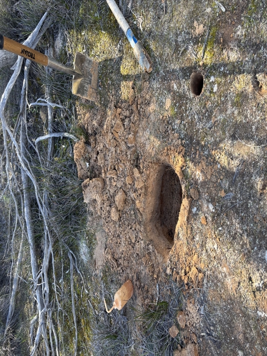 Soil survey site including an auger and shovel excavation -
