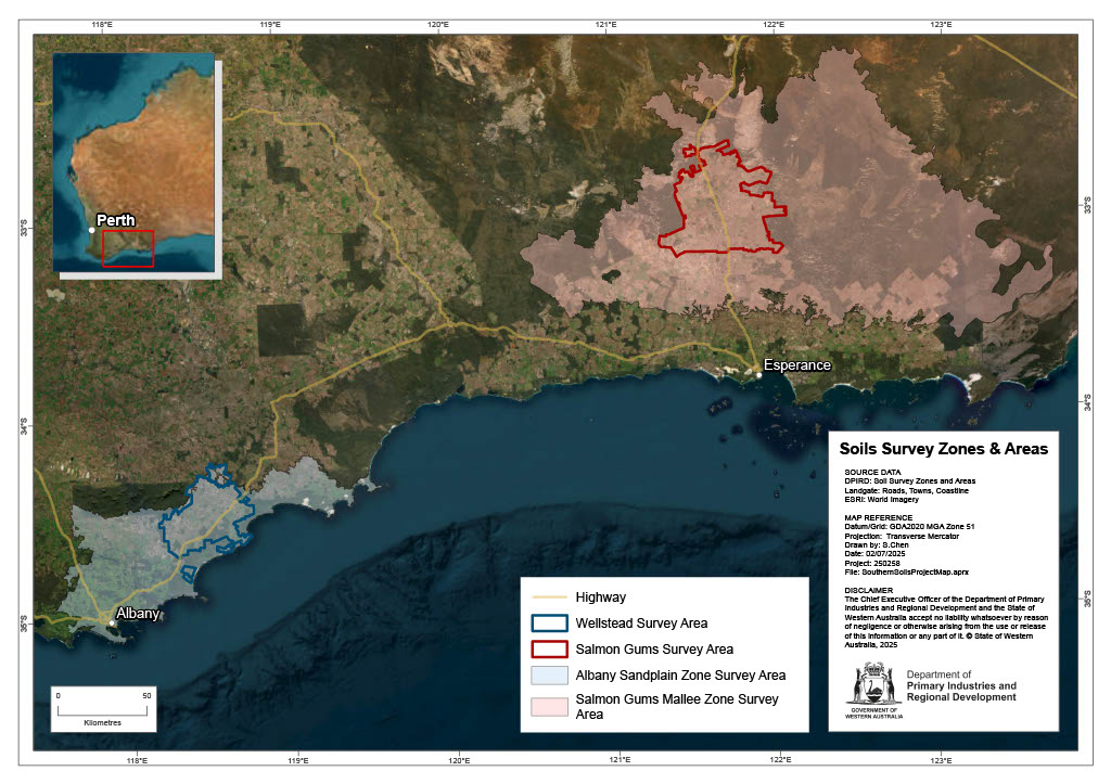 - Update soil maps by refreshing DPIRD’s soil-landscape data to build a clearer picture of soils across the South Coast.